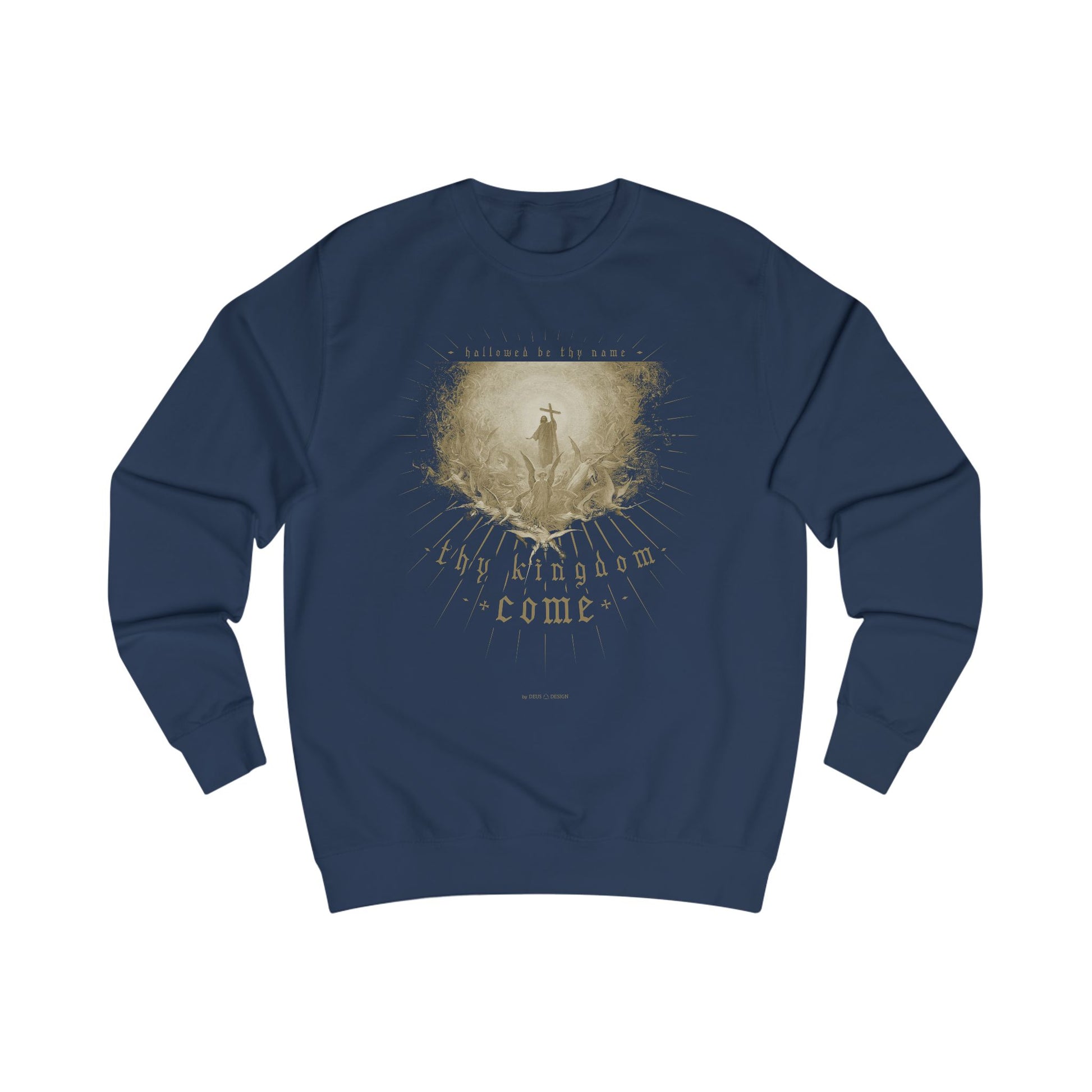 The idea for this our father sweatshirt came to me when I was reciting the Lord's Prayer with everyone during Mass. It combines a fragment of this prayer with a complementary image of Christ, coming back to earth surrounded by angels and establishing his kingdom on earth. The perfect Catholic sweatshirt for someone who wants to evangelize and is not ashamed to show their faith. The image is a fragment of a copperplate engraving by Gustave Diore entitled “The Triumph of Christianity over Paganism.” I adapted it, cropped it, altered it, and brightened it up to make it look its best.